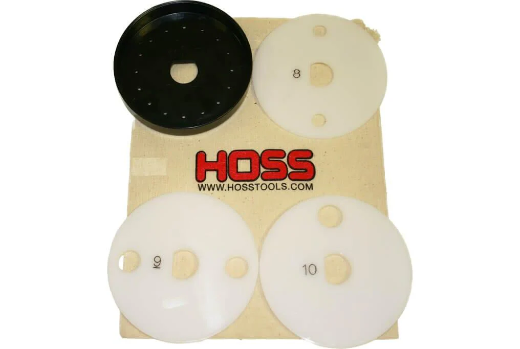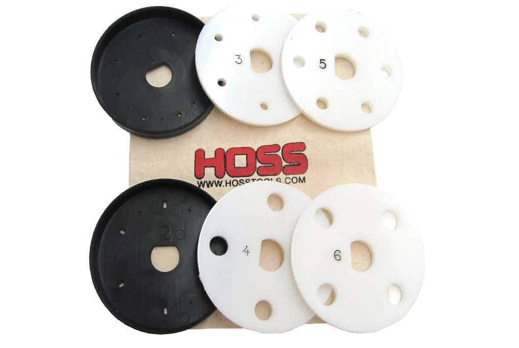 The Seed Plates fit inside the hopper for the Hoss Garden Seeder. We offer 10 pre-drilled plates, three different thicknesses of blank, customizable plates, and a metal drill template for drilling equally spaced holes in the blank plates.