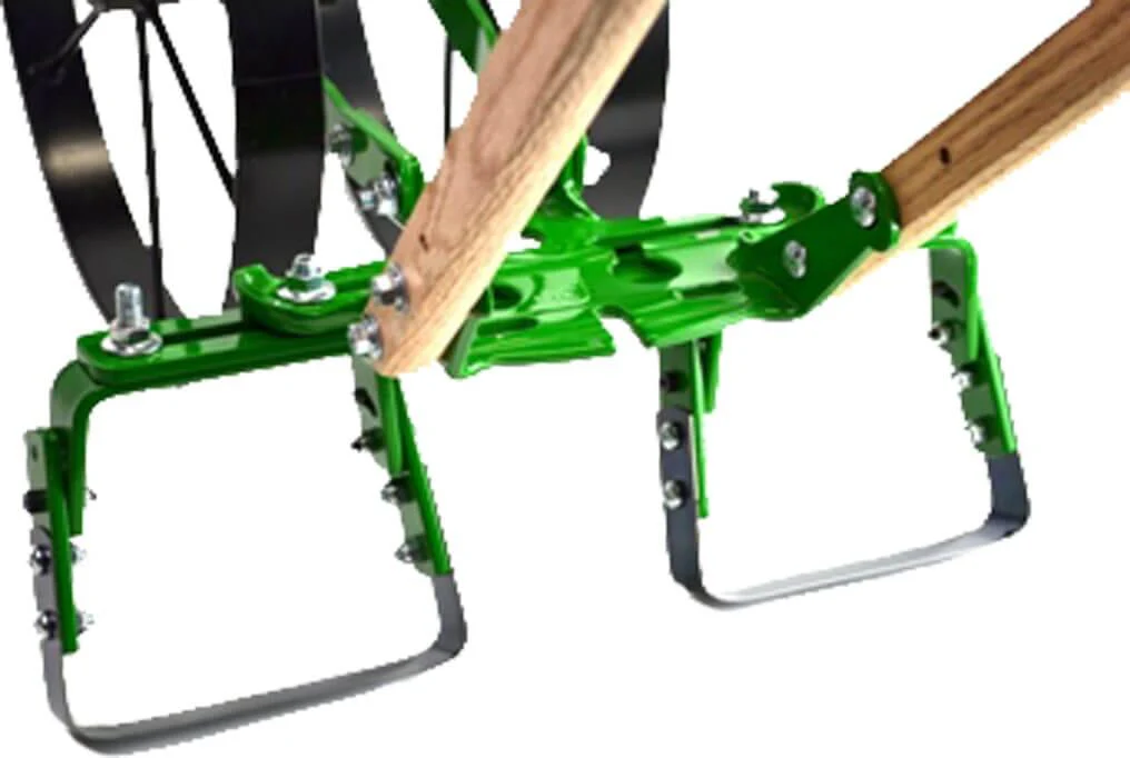 The Spreader Bar Bonus includes our Spreader Bar extension and 6" Oscillating Hoes. Simply attach the Spreader Bar to the tool bar of the Hoss Double Wheel Hoe. Attach the 6" Oscillating Hoes on each side of the Spreader Bar. The space between the wheels on the Double Wheel Hoe allows you to straddle small plants (up to 6") and work both sides of the row in one pass.
